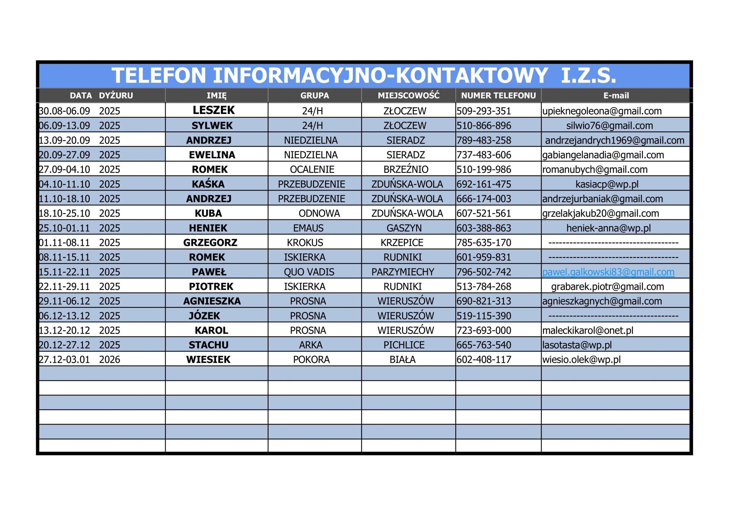 KONTAK RZECZNIK I SEKRETARZ I.Z.S